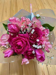 ご要望の赤やピンクをメインにした愛らしい花束です。